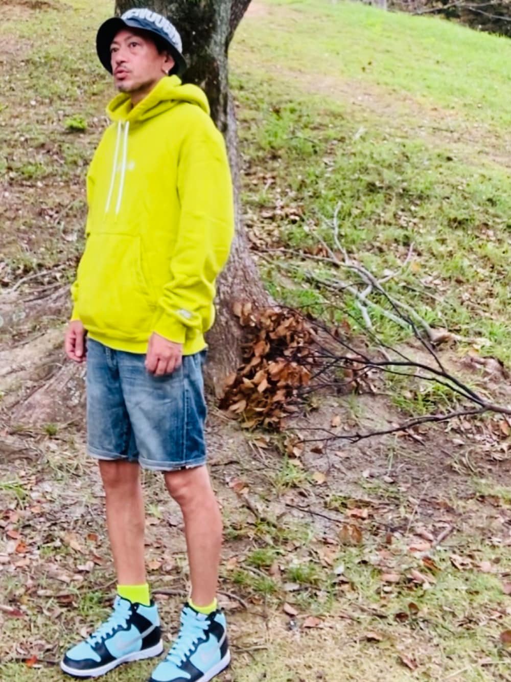"ネオンイエローのプルオーバーパーカーを着ていく" GOODENOUGH×NIKE 💙×💛