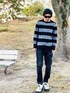 "ボーダーのフィッシャーマンニットを着ていく" Gの初期アーカイブ、フィッシャーマンニットを 着たモノトーンコーデ。 もう朝はニットだけだと寒いぜっ‼︎