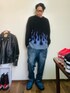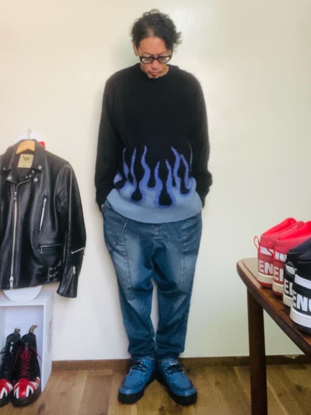 GOODMAN®️のニット/セーター「WEB限定 別注 ビッグシルエット モヘヤタッチ クルーネック シャギーニット/レオパード/チェッカー」を使ったコーディネート