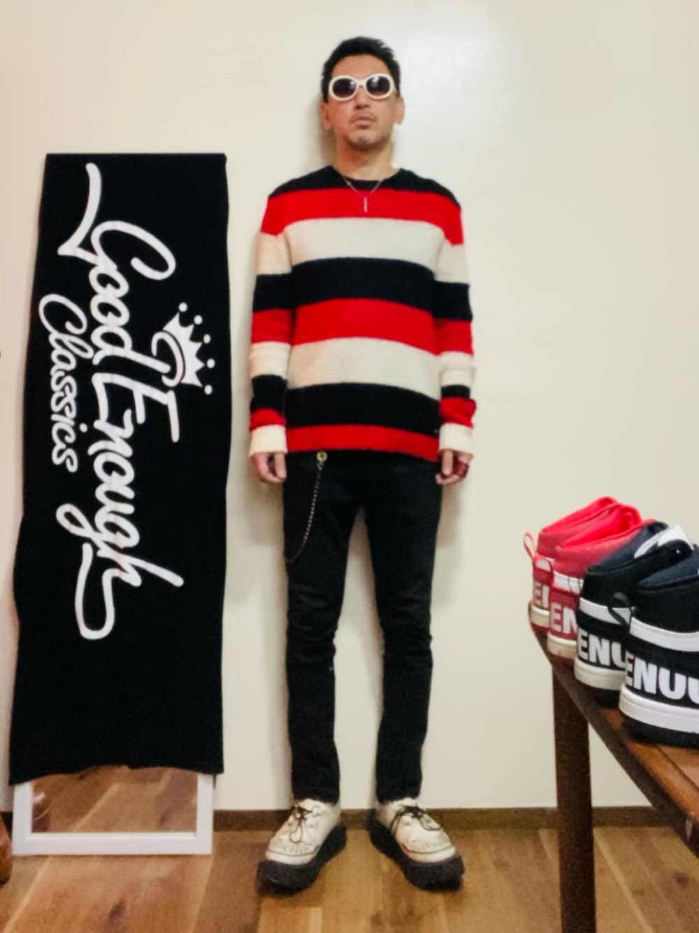 DIESELuniform experimentGEORGE COX¥52,800Ditaこの画像から似たアイテムを検索できます5711421お気に入り (12)210GOODMAN®️さんへのコメントNO COMMENTコメントはスマートフォン用アプリからご利用できます着用アイテムDIESELDIESELボーダーモヘアニット/セーター (レッド系)ニット/セーター探すZOZOTOWNで探すuniform experimentuniform experimentストレッチコットンストレートスリムパンツパンツ (ブラック系)パンツ探すZOZOTOWNで探す¥52,800GEORGE COXGEORGE COXその他シューズ (ホワイト系)その他シューズサイズ:6着用コーデ:231件探すZOZOTOWNで探すDitaDita90's ヴィンテージ/ DOMEサングラス (ホワイト系)サングラス探すZOZOTOWNで探すGOODMAN®️のニット/セーター「ボーダーモヘア」を使ったコーディネートわい今日が仕事納め2025.1.4着用ブランドDIESELuniform experimentGEORGE COXDitaタグ#休日スタイル#ニット#モヘアニット#ボーダーニット#ラバーソール#パンク#ジョニーロットンモデル情報男性・168cm・49歳似ているアイテムDIESEL × ニット/セーターuniform experiment × パンツGEORGE COX × その他シューズDita × サングラスGOODMAN®️@goodman3636 / 168cm / MEN0コーディネート0フォロワー注目のコーディネートアプリでもっと見るもっと見る