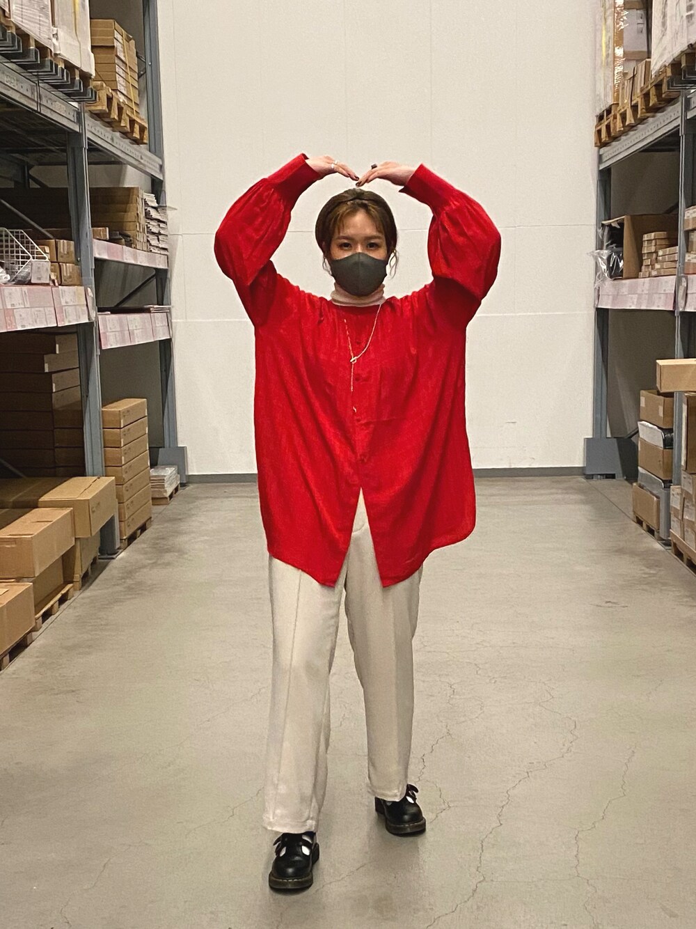 ぽわっと袖がポイントの赤ブラウス❤️🔥