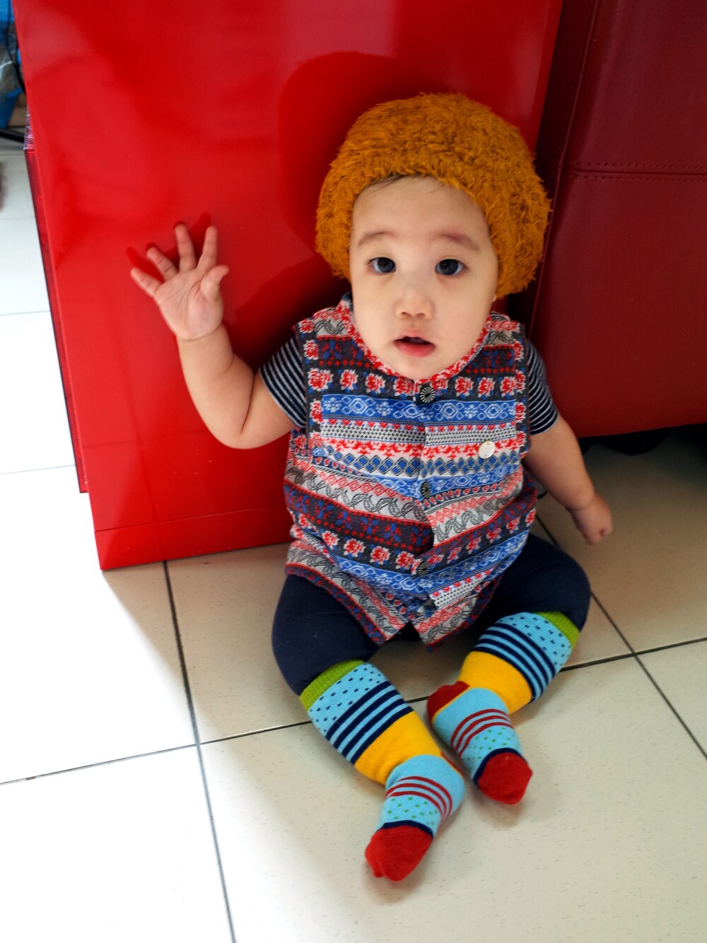 起床了。今天希豆精神不錯。已經完全康復了。換馬糜身體微微不適還是帶著好心情幫希豆稍微打扮一下。可是希豆又石化了...(O_O)カチカチ←石化現象。嬰兒山系風。哎喲正面看帽子真的栗不起來。 ■栗子帽_cokitica(size:M) 常看日本媽媽的blog都可見cokitica這牌子。wear也超多日本小童戴這頂栗子帽。栗子帽是我自己取的啦!因為戴起來的形狀感覺很像顆栗子~噗。不過原價不便宜所以size買M的想說少說可以戴到幼稚園。現在戴起來像軟掉的大便真是好笑。拔逼用My day買折合台幣加一加手續費就要1700左右喏。衣服我是不太喜歡買大件一點但是帽子真的需要買大一點。 ■背心_FITH(size:80cm) お洒落子供服ブランドFITH這個牌子的成立1981年已有一段時間,所以做工跟風格的走向都很成熟。我個人認為他的風格其實就是大人的縮小版。你得用多一點時尚的面貌去檢視它的價值。因為事實上這牌子真的不便宜。也許是職業病的關係我比較喜歡買有牌子的衣服因為那可以順便帶我去認識這牌子,比較不像韓國製衣服以一句[韓貨]概括全部。 ■長褲_GAP (6-12M) 這款原件399變198時我發狠存貨了8條。很奇怪的是同款的女寶寶跟男寶寶的版子不太一樣,男寶寶的版子比較大。希豆是穿女寶寶款啦,因為馬縻喜歡服貼感。因為是內搭褲的概念,所以這款的延展力超高,而且布料很薄,儘管夏天穿也不用擔心太熱。 ■中筒襪_stample stample襪子我真的超推這款,要找嬰兒的中筒襪而且兩雙入才480的不多,不知道位何一雙襪子390買不下手,兩雙480就感覺便宜很多。這雙很早就入手,那時候買的比較大就是為了要等冬天穿。到了冬天可以直接穿在褲子上面當襪套這招,除了可愛之外也可以增加保暖。