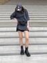 ロンT×ショーパン♡ ラフなカジュアルコーデ🖤 バックプリントがめちゃかわなロンT♡ ゆったり着られて お尻が隠れる丁度いい丈感で体型カバー◎ スリットが入ることで華奢見えシルエット🙆♀️ tops//reca 🏷️バックプリントロゴロンTシャツ カラー:グレー系 bottoms//shein bag//GU shoes//shein