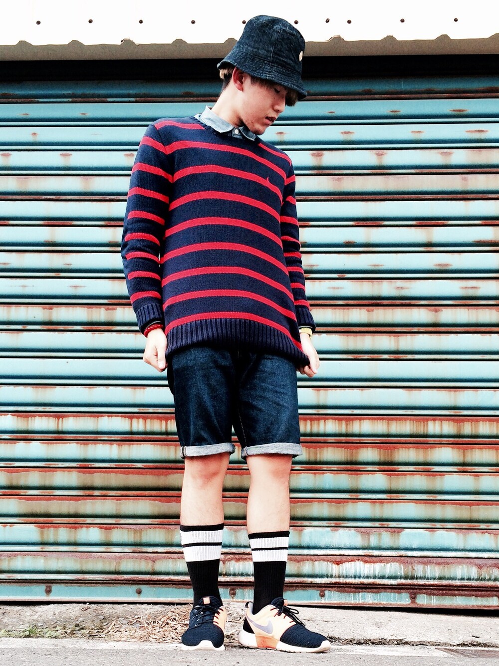 Gorbinzsheのニット/セーター「Schott (ショット) ボーダーサーマルニット 」を使ったコーディネート