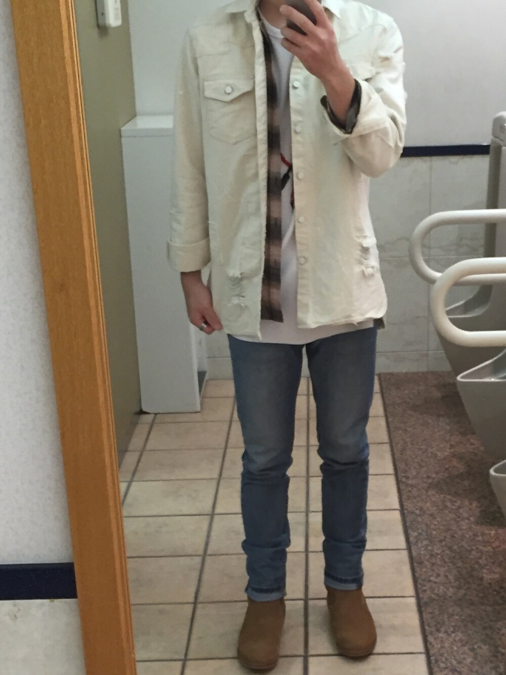 15ssのOFF WHITEのデニムシャツに1500円で買ったシャツを初リメイクでノーカラーにして更にダメージ入れました!割と成功です!