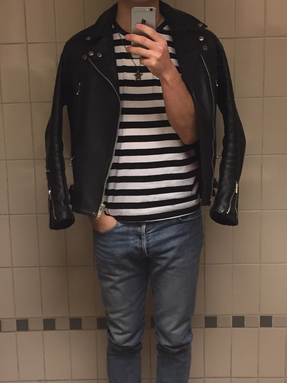 ライダースの下は半袖という意地。 たまにパーカーきてしまいますが。笑