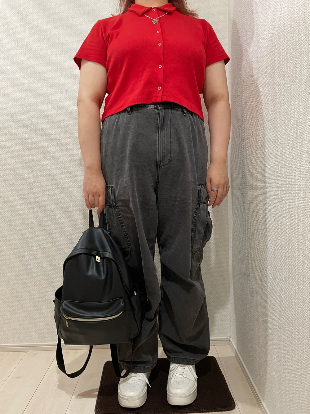 ファンミ2日目行った時のやつ ライブも決まって最高ですね この前同じようなコーデしたな… 赤と黒が好きです