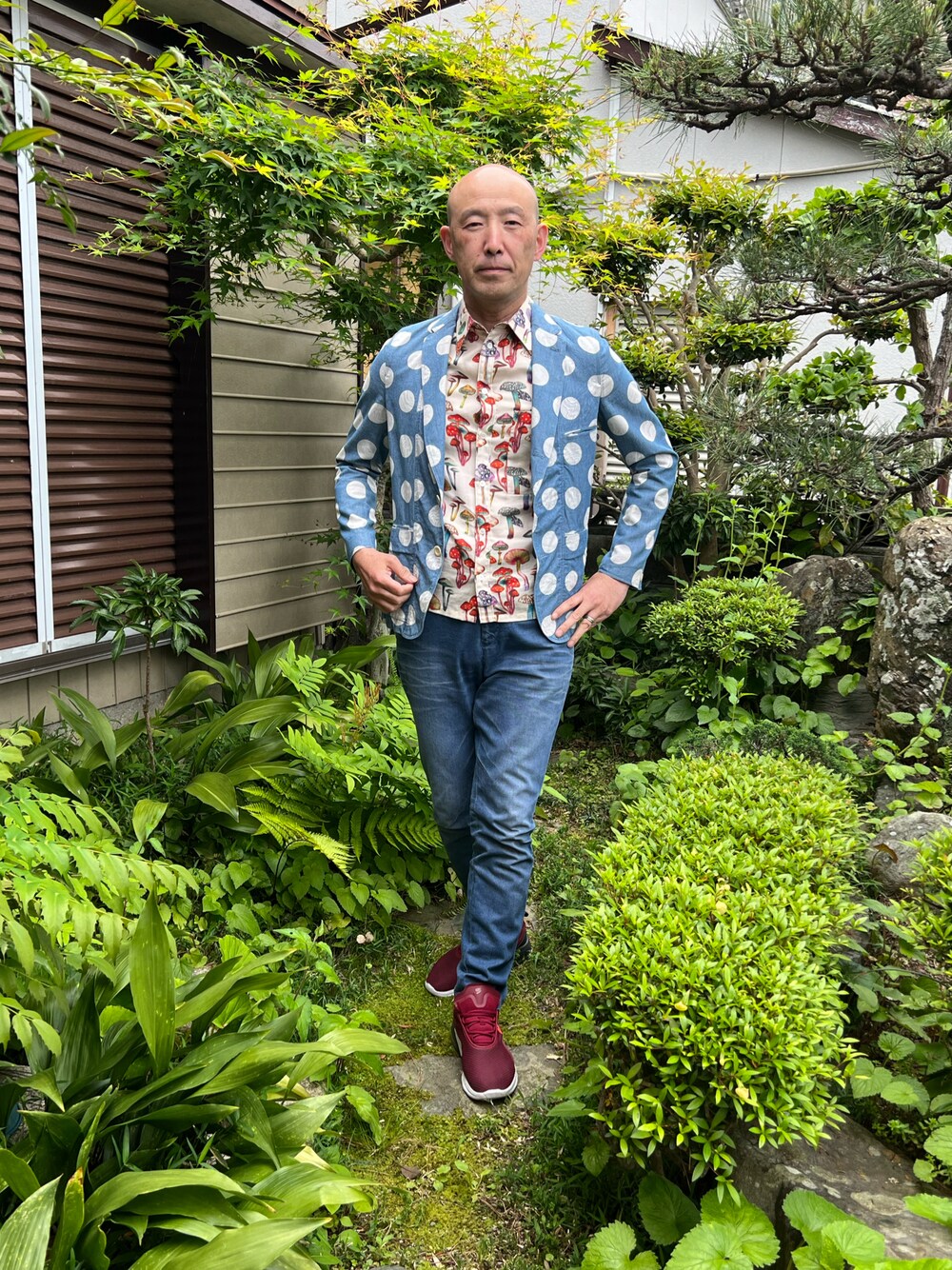 着回しコーデ 曇りの日はやはり肌寒い🤔 水玉ジャケット サイズ少し小さいんだなぁ🤔 古着でLサイズがあれば買おう🫡 ほな今日も頑張ります👍