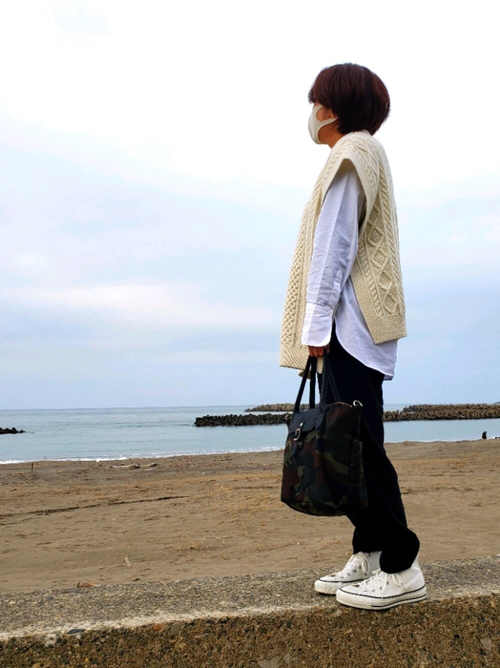 ケーブル編みが可愛いニットベスト いろいろ重ね着したいなぁ…