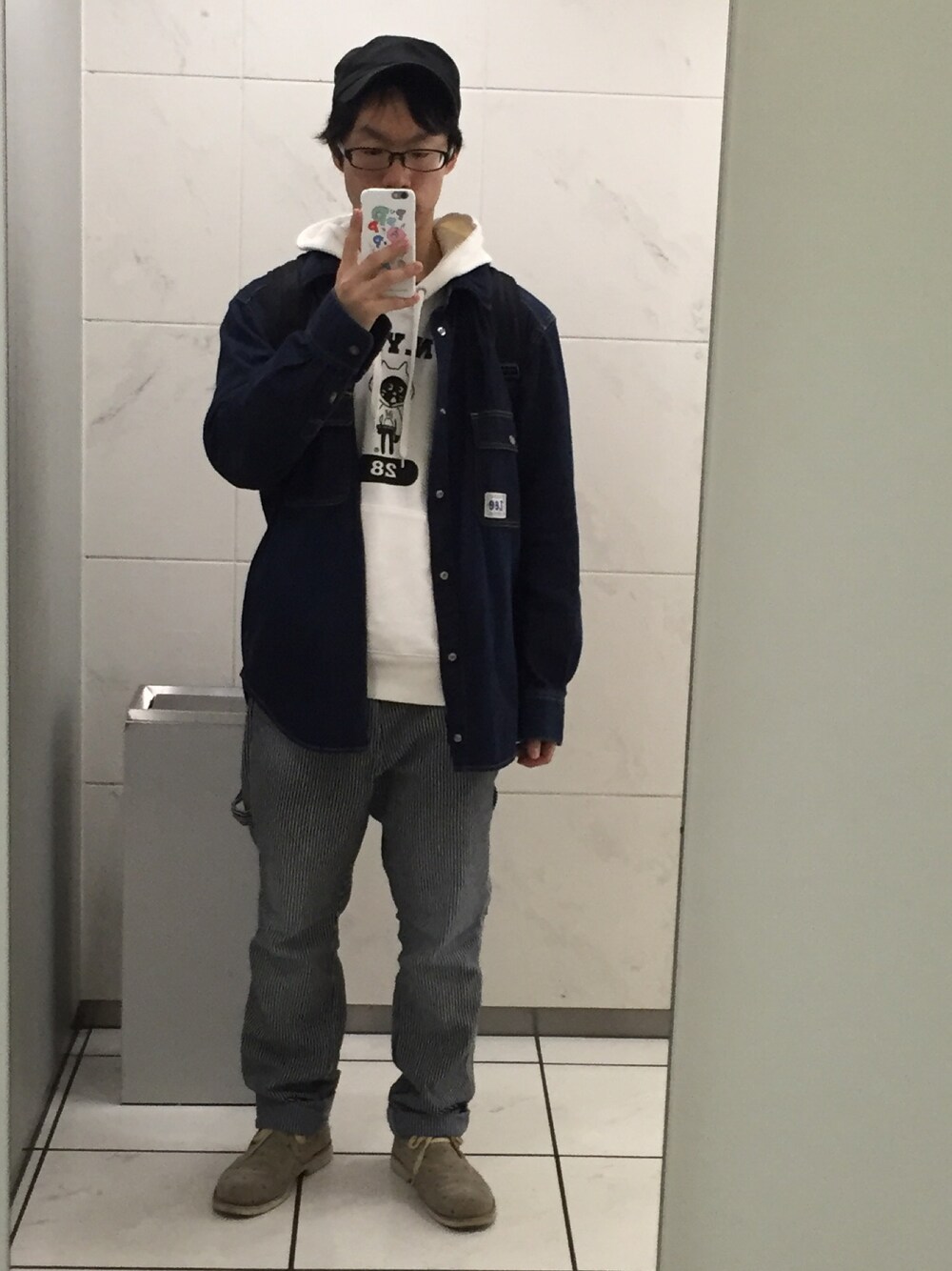 ワークスタイルコーデ。 ずっと眠ってたヒッコリーパンツ掘り起こしてみた。 ...寒い。