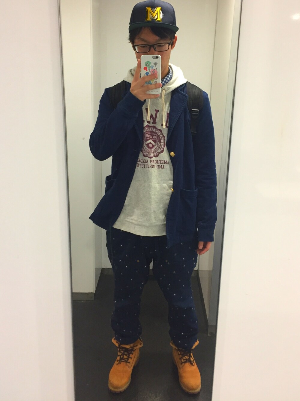 ジャケットとパーカーのコーデ ストリート系になった