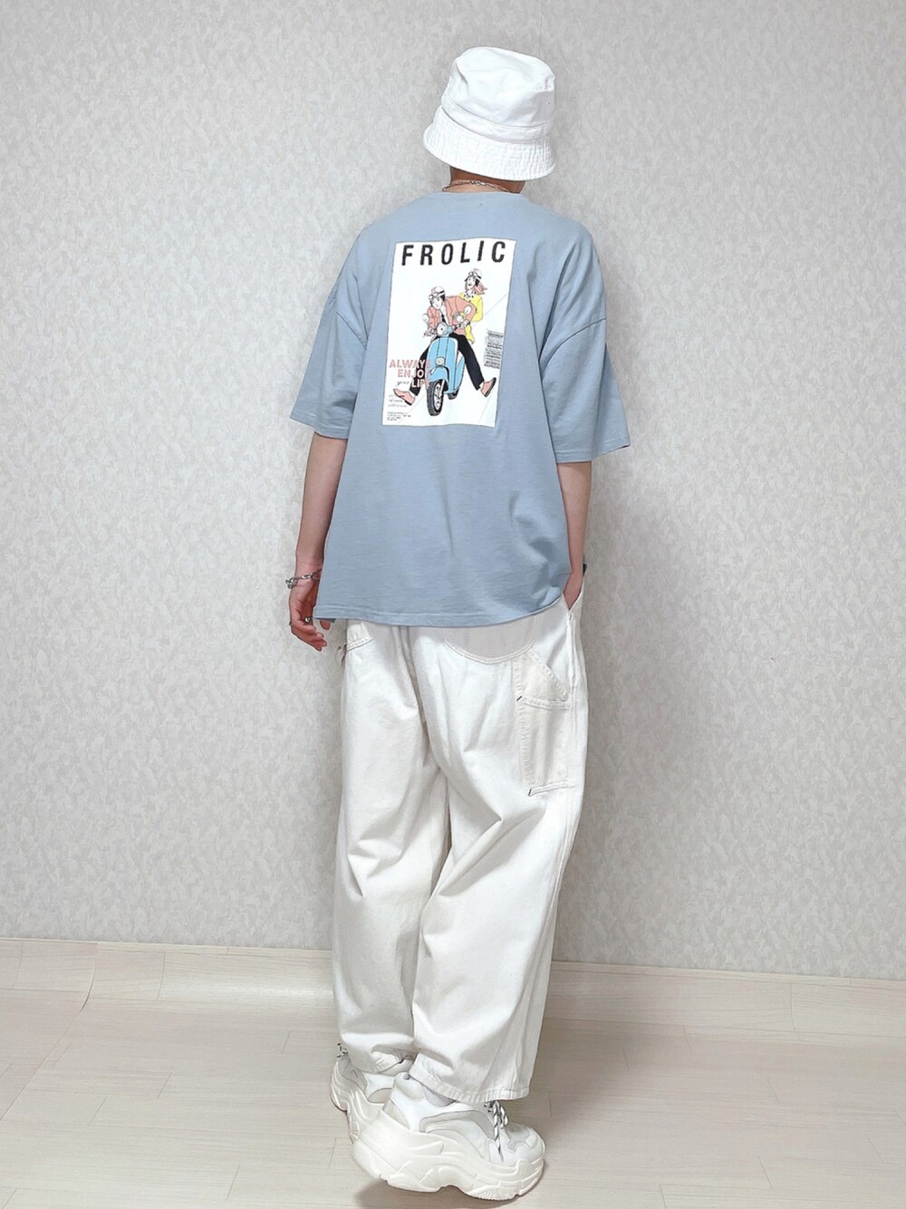 ご覧頂きありがとうございます。 ストリートスタイル。 kutirのバッグプリントTが めちゃめちゃ可愛いです。 足元は白スニーカーで、 清潔感を出しました👌🏻 では👋🏻 〜〜 w e a r s i z e〜〜 バッグプリントTシャツ Mサイズ 白パンツ Mサイズ ダッドスニーカー Lサイズ -- 最後までお読み頂きありがとうございます。