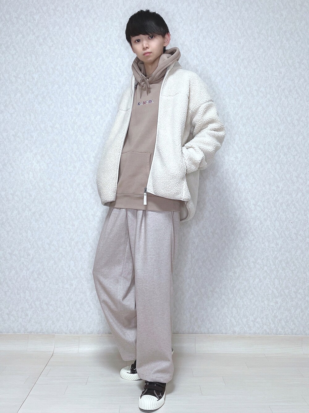 ご覧頂きありがとうございます。 今回はワントーンコーデ。 ベージュトーンの色味でまとめました。 では👋🏻 〜〜 w e a r s i z e〜〜 ボアジャケット Mサイズ ロゴパーカー Mサイズ ワイドパンツ Mサイズ スニーカー 27.5 -- 最後までお読み頂きありがとうございます。