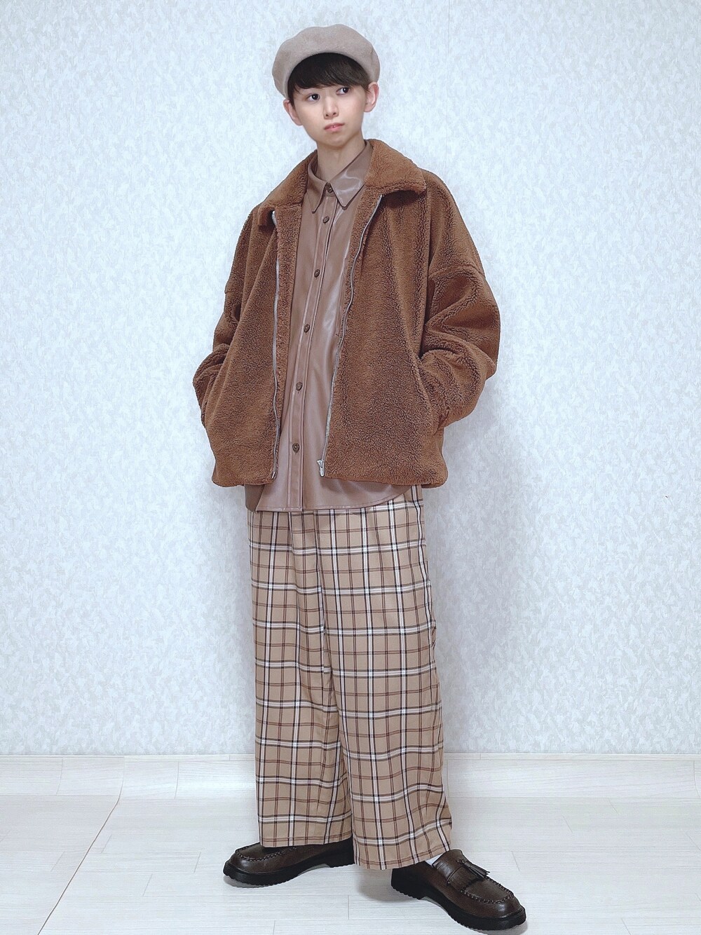 ご覧頂きありがとうございます。 今回はチョコ色に染まれコーデです。 ブラウンのワントーンで、 チョコ感を出しました🍫 では👋🏻 〜〜 w e a r s i z e〜〜 ボアジャケット Fサイズ レザーシャツ Mサイズ チェックパンツ Mサイズ ローファー 27cm -- 最後までお読み頂きありがとうございます。