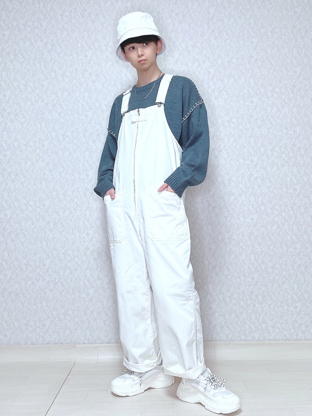ご覧頂きありがとうございます。 今回はオーバーオールコーデ。 『グリーン×ホワイト』 最近ハマってる色合わせです。 では👋🏻 〜〜 w e a r s i z e〜〜 ステッチニット Mサイズ オーバーオール Fサイズ 白スニーカー Mサイズ -- 最後までお読み頂きありがとうございます。