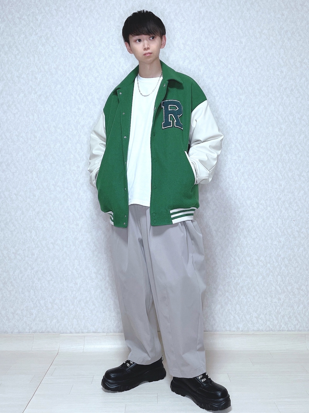 ご覧頂きありがとうございます。 今回はスタジャンを使ったコーデ。 では👋🏻 〜〜 w e a r s i z e〜〜 スタジャン Mサイズ ロンT Mサイズ ワイドパンツ Mサイズ ダッドスニーカー Lサイズ -- 最後までお読み頂きありがとうございます。