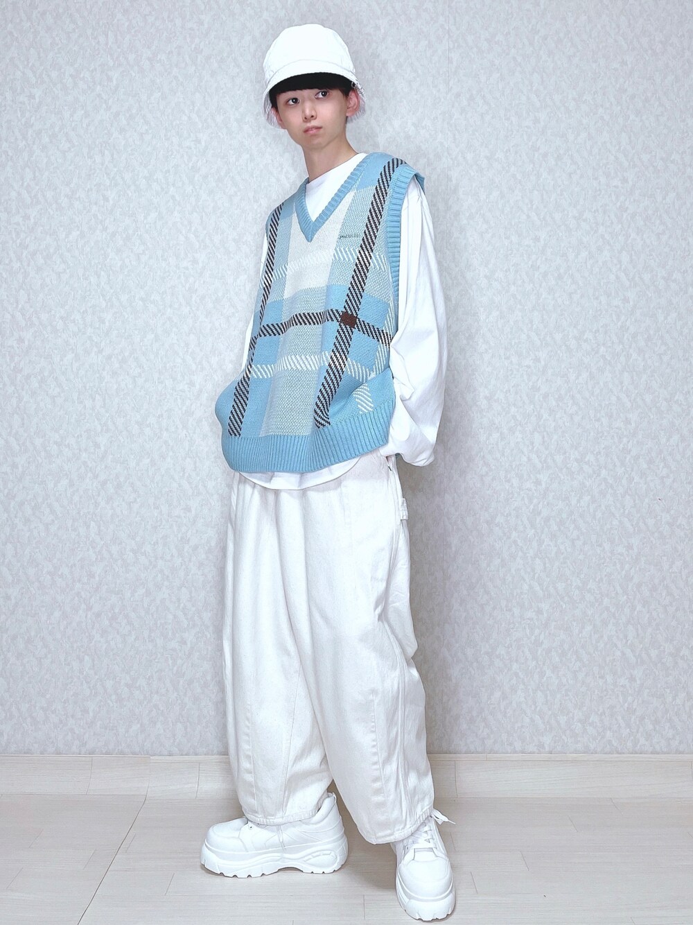 ご覧頂きありがとうございます。 今回はバケットハットを使ったコーデ。 チェックのニットベストがポイントです。 では👋🏻 〜〜 w e a r s i z e〜〜 柄ニットベスト Mサイズ ロンT Sサイズ 白パンツ Mサイズ ダッドスニーカー Lサイズ -- 最後までお読み頂きありがとうございます。