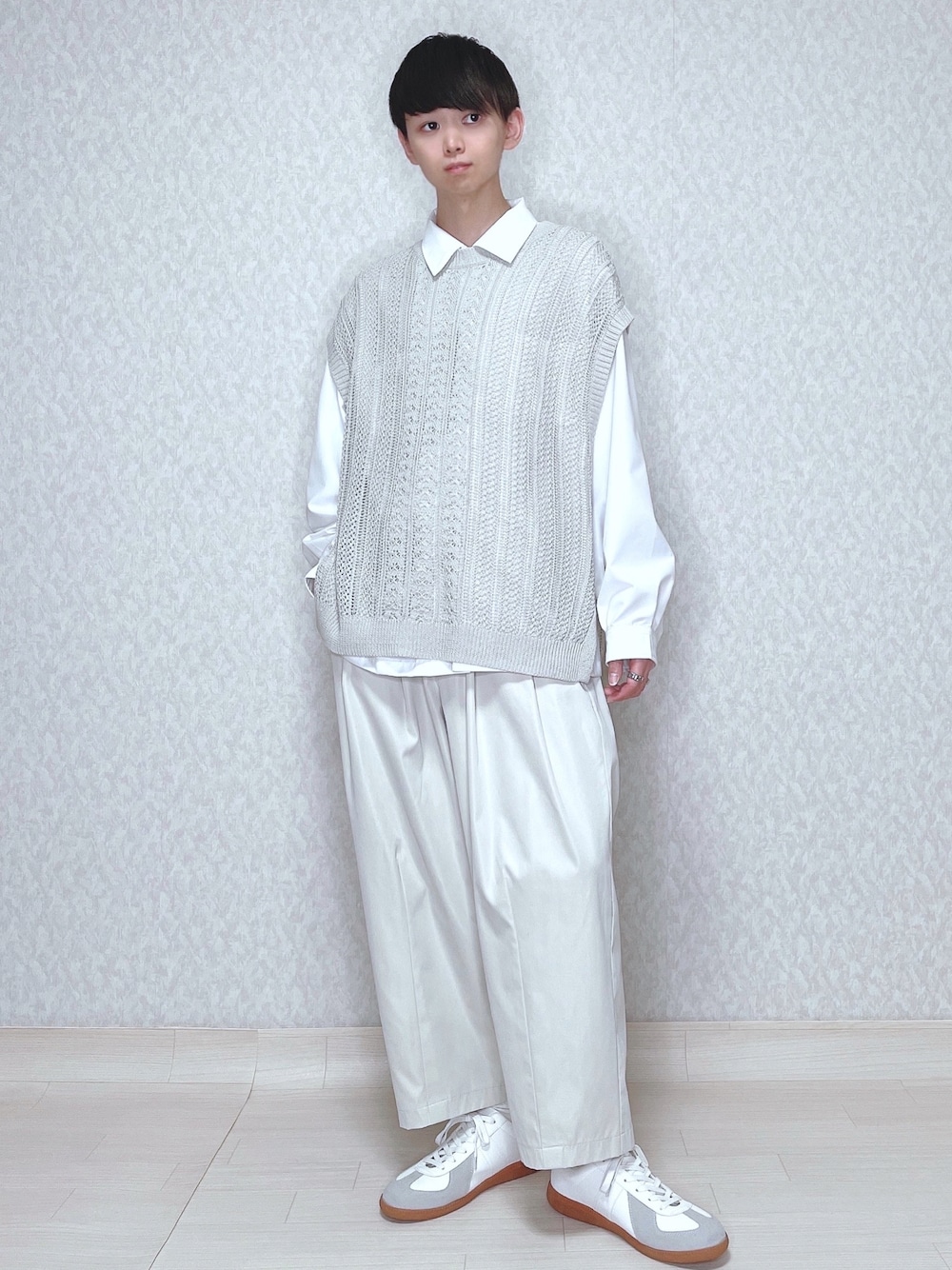 KEITAのベスト「シアーレースニットルーズベスト」を使ったコーディネート