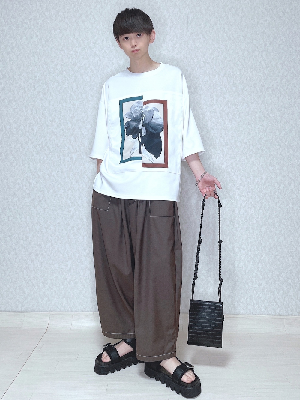 ご覧頂きありがとうございます。 今回はきれいめカジュアル。 プリントTシャツを アクセントにしました。 では👋🏻 〜〜 w e a r s i z e〜〜 プリントTシャツ Mサイズ ワイドパンツ Sサイズ レザーサンダル Mサイズ -- 最後までお読み頂きありがとうございます。