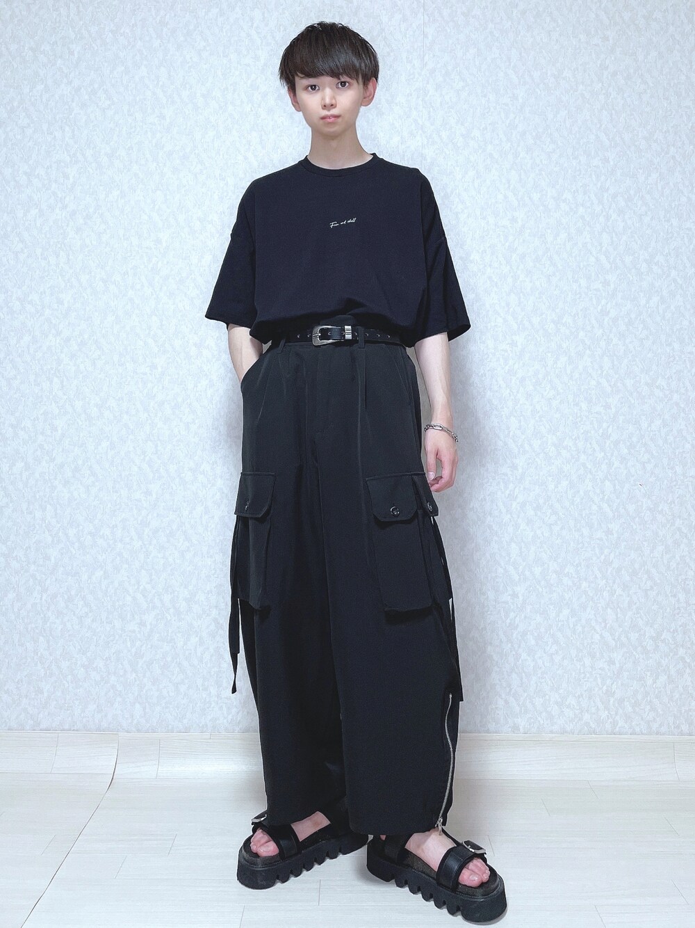 ご覧頂きありがとうございます。 今回はTシャツコーデ。 オールブラックでまとめました。 では👋🏻 〜〜 w e a r s i z e〜〜 ロゴTシャツ Mサイズ パラシュートパンツ Mサイズ レザーサンダル Mサイズ -- 最後までお読み頂きありがとうございます。