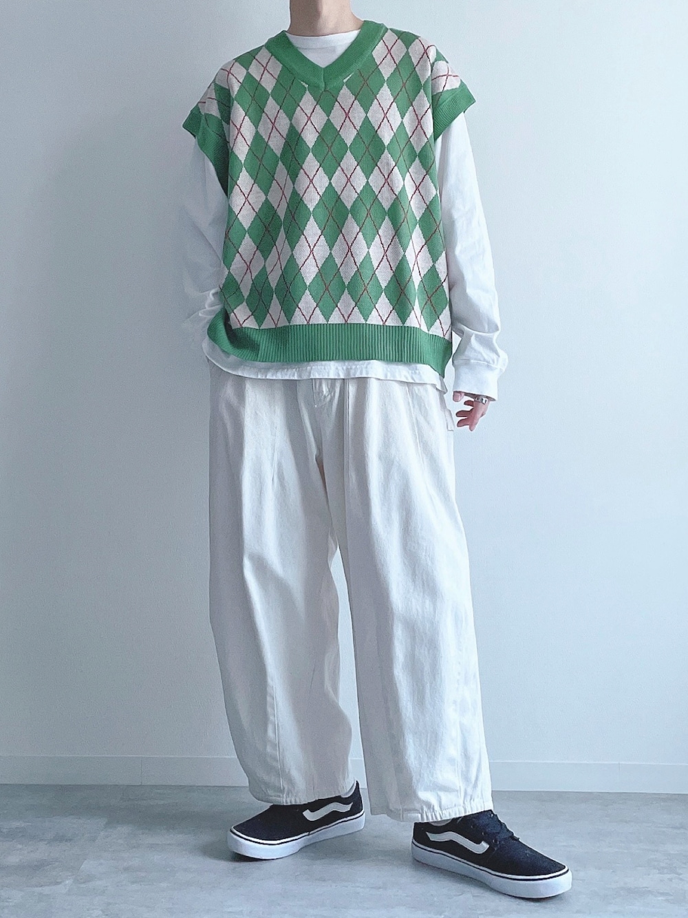 KEITA(CRAFT STANDARD BOUTIQUE)のベスト「WEGO/アーガイルルーズニットベスト」を使ったコーディネート