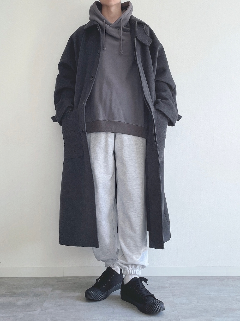 ご覧頂きありがとうございます。 今回はステンカラーコートを使ったコーデ。 では👋🏻 〜〜 w e a r s i z e〜〜 ステンカラーコート Mサイズ パーカー Mサイズ スウェットパンツ Mサイズ スニーカー 27.5cm -- 最後までお読み頂きありがとうございます。