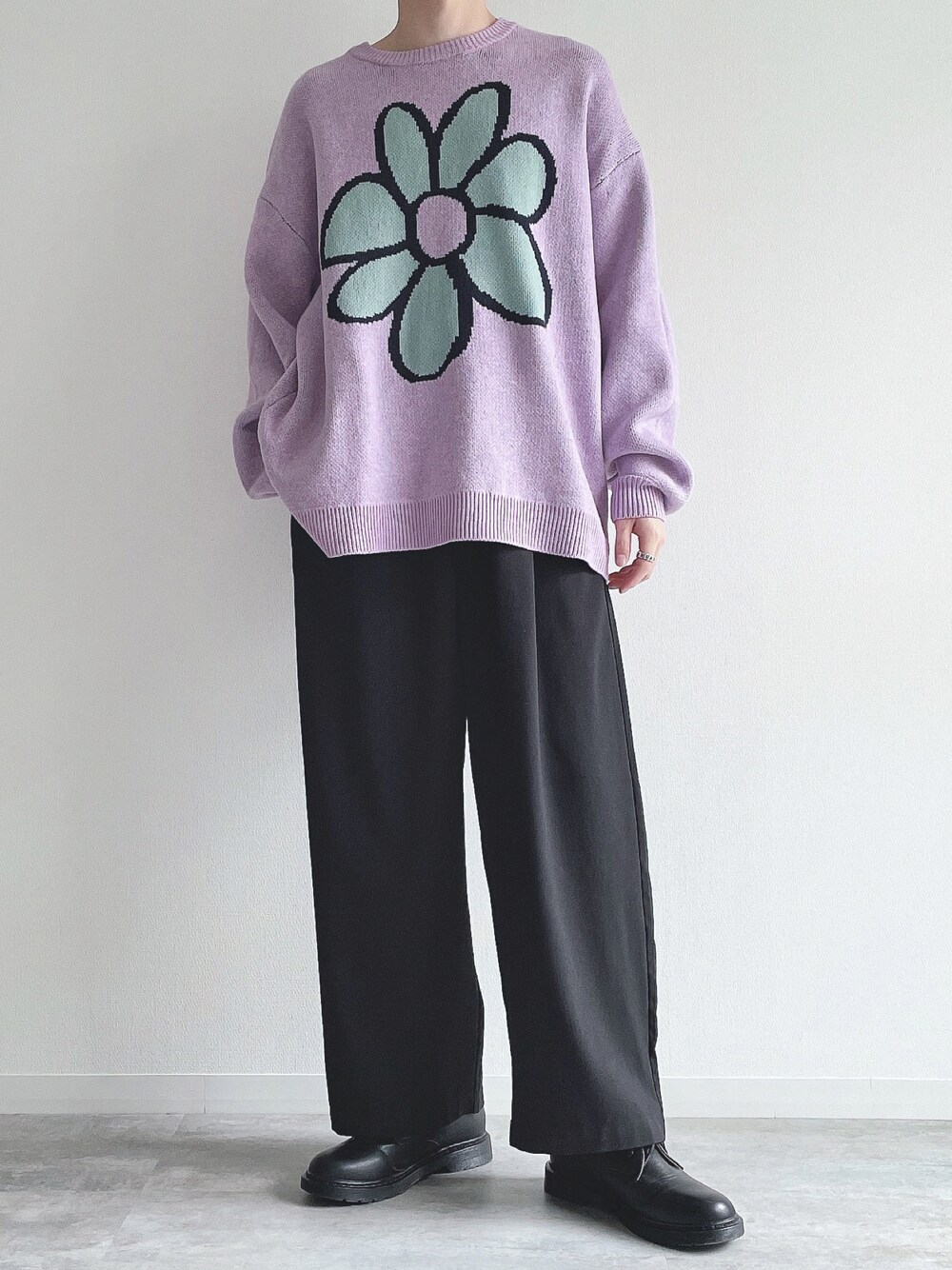 ご覧頂きありがとうございます。 今回はフラワーニットを使ったコーデ。 では👋🏻 〜〜 w e a r s i z e〜〜 フラワーニット Mサイズ ワイドパンツ Mサイズ 革靴 Mサイズ -- 最後までお読み頂きありがとうございます。