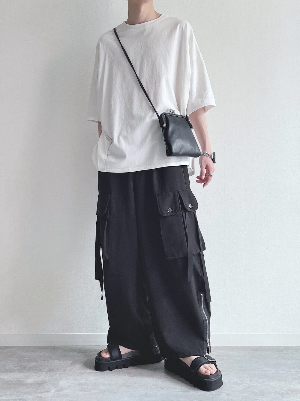 ご覧頂きありがとうございます。 今回はミニバッグを使ったコーデ。 では👋🏻 〜〜 w e a r s i z e〜〜 白Tシャツ Mサイズ パラシュートパンツ Mサイズ レザーサンダル Lサイズ -- 最後までお読み頂きありがとうございます。