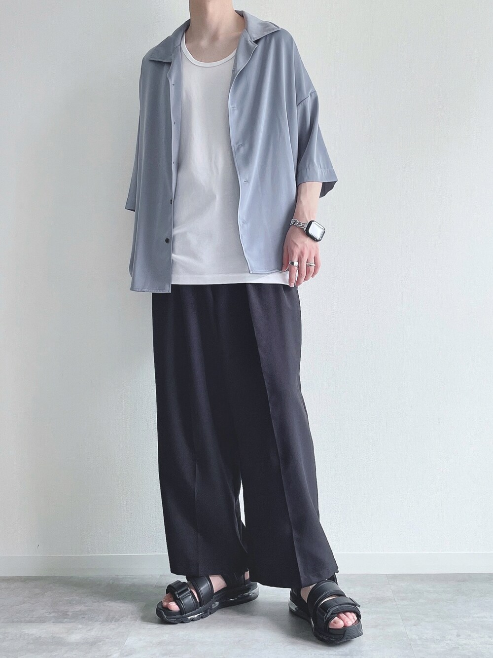 ご覧頂きありがとうございます。 今回はシャツスタイル。 では👋🏻 〜〜 w e a r s i z e〜〜 ドルマンシャツ Sサイズ タンクトップ Mサイズ ワイドパンツ Mサイズ サンダル Mサイズ -- 最後までお読み頂きありがとうございます。