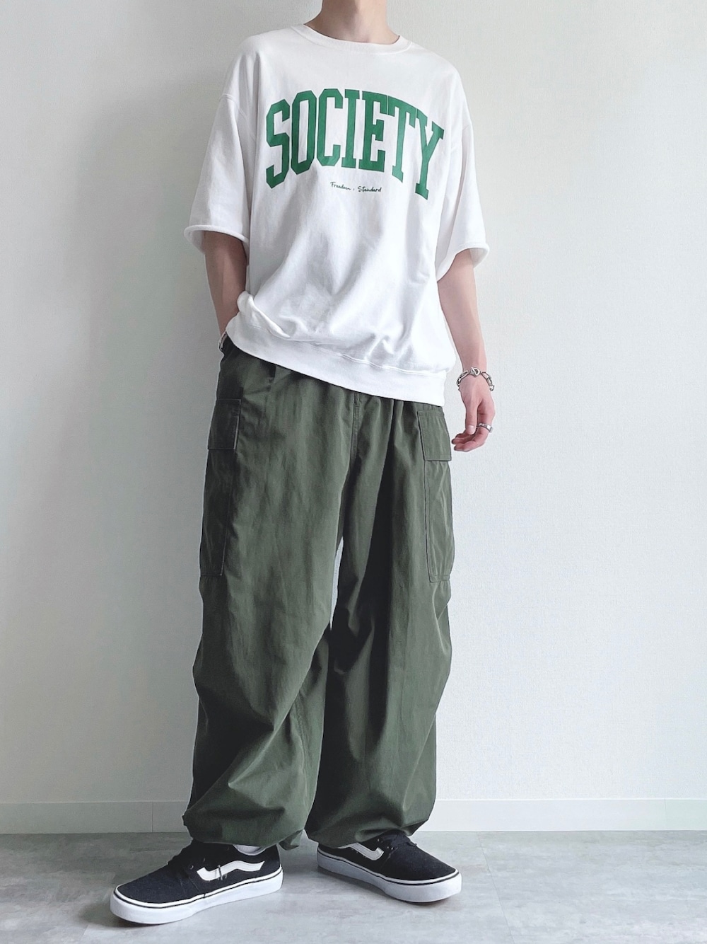 ご覧頂きありがとうございます。 今回はロゴTシャツを使ったコーデ。 では👋🏻 〜〜 w e a r s i z e〜〜 ロゴTシャツ Mサイズ カーゴパンツ Mサイズ スニーカー 27.5cm -- 最後までお読み頂きありがとうございます。