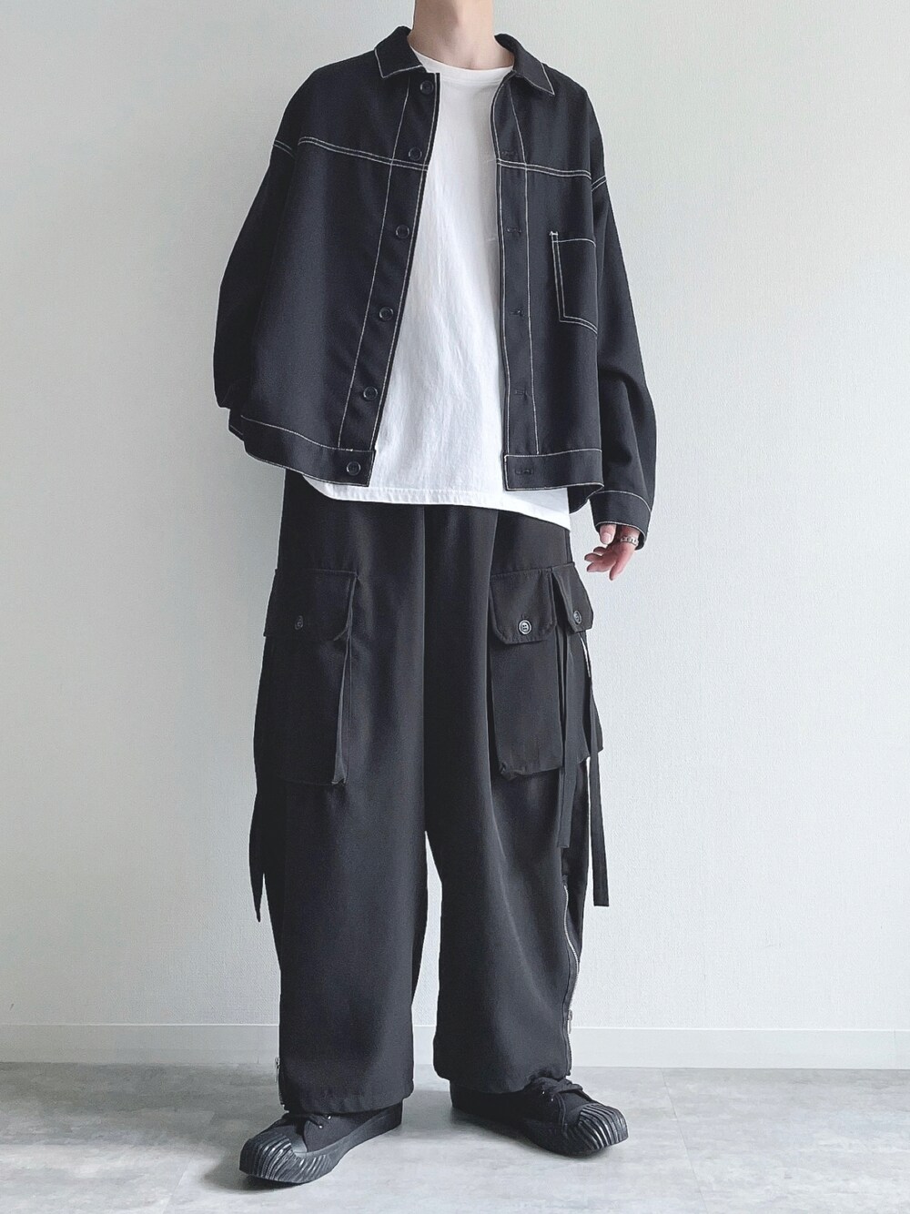 ご覧頂きありがとうございます。 今回はジャケットコーデ。 では👋🏻 〜〜 w e a r s i z e〜〜 ジャケット Mサイズ 白Tシャツ Mサイズ パラシュートパンツ Mサイズ スニーカー 27.5cm -- 最後までお読み頂きありがとうございます。
