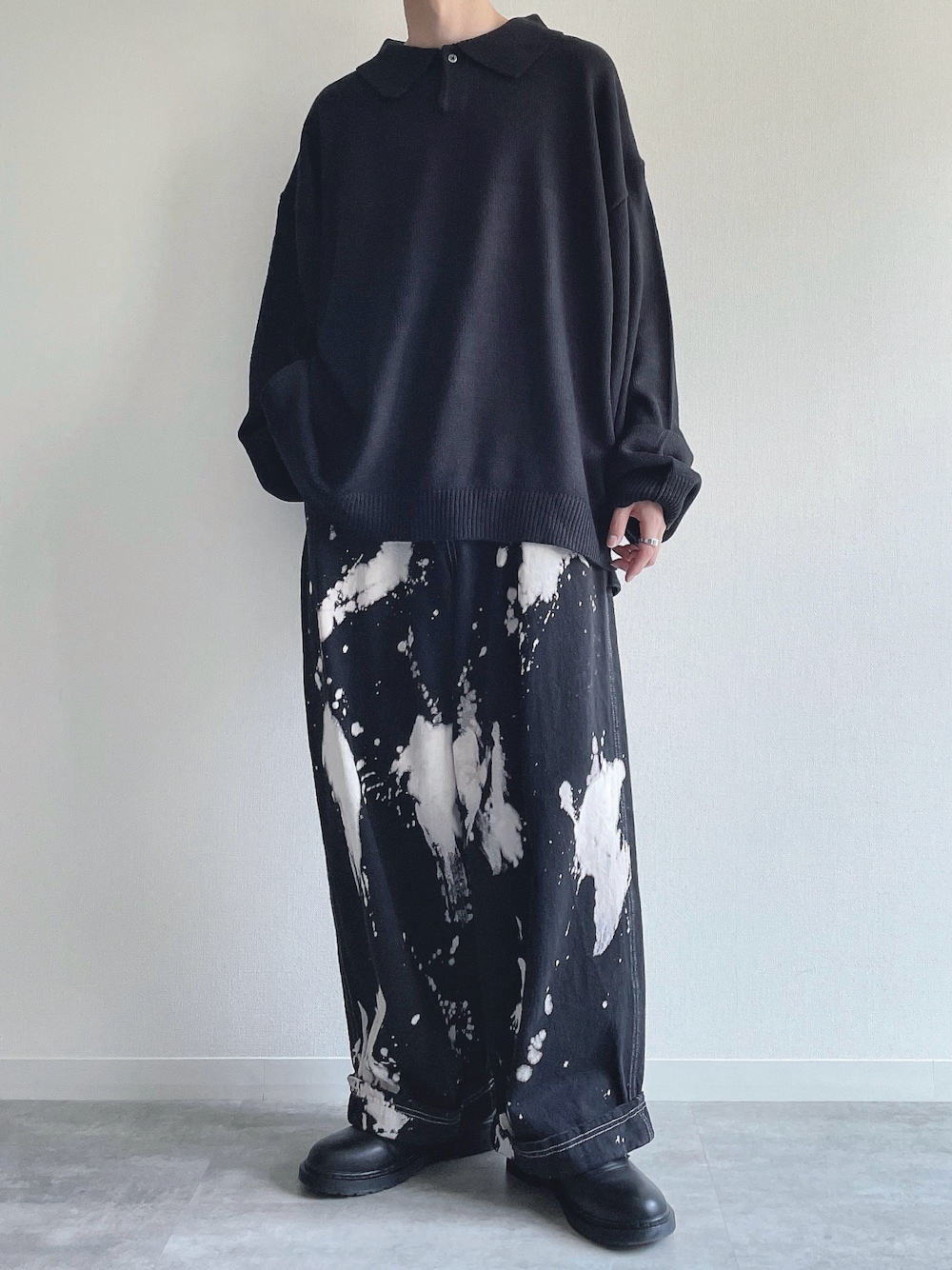 KEITAのニット/セーター「ルーズニットシングルボタンニット長袖ポロシャツ」を使ったコーディネート