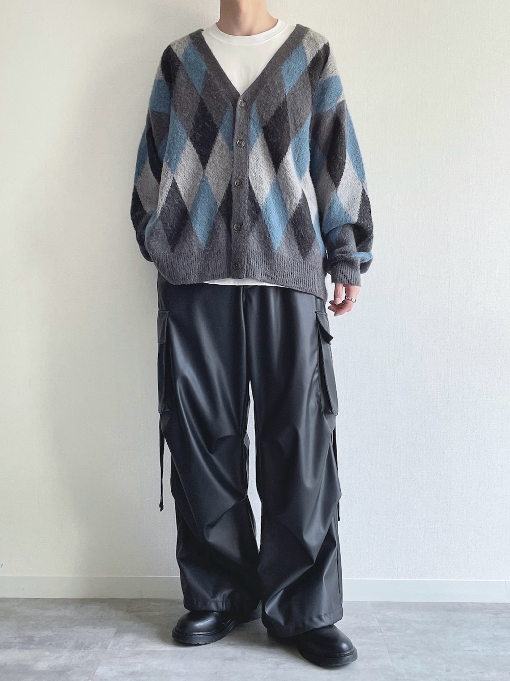 KEITAのカーディガン/ボレロ「Pattern mohair knit over loose cardigan / 総柄/モヘヤニットオーバールーズカーディガン」を使ったコーディネート