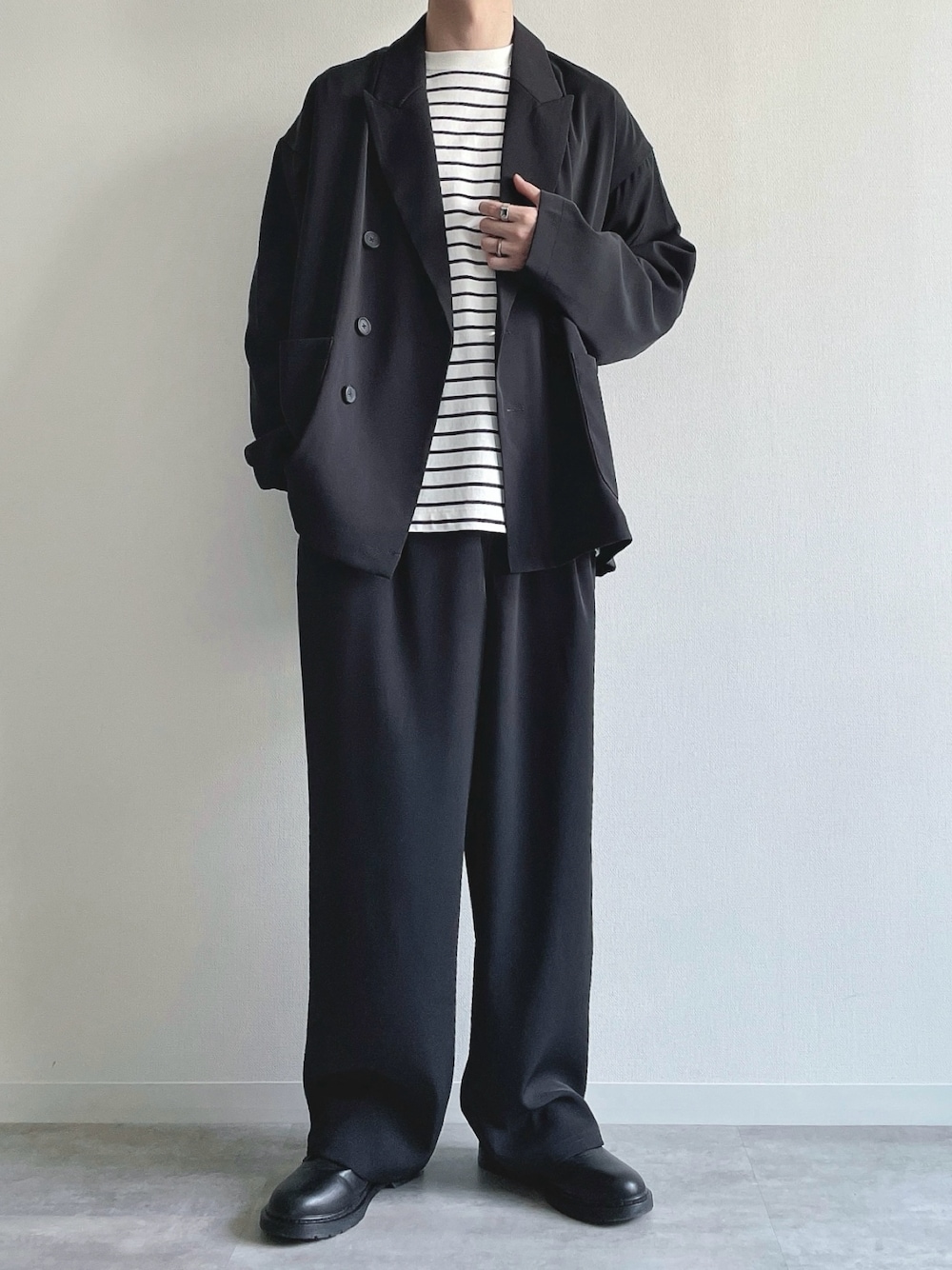 KEITAのセットアップ「【CIYOT-シヨウト-】セットアップ ドレープオーバーサイズWテーラージャケット+タックワイドストレートイージーパンツ」を使ったコーディネート