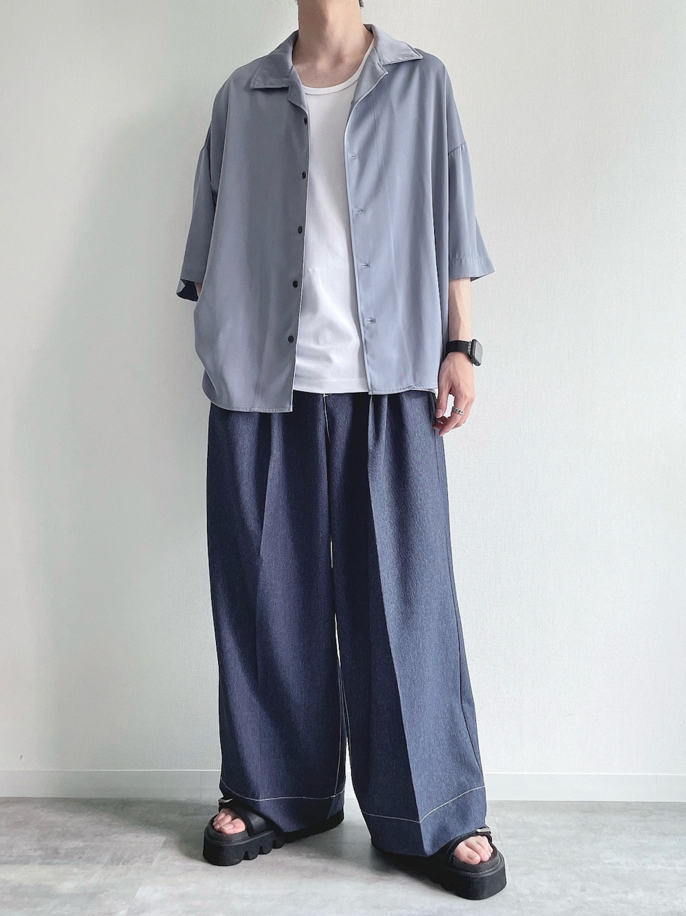 ご覧頂きありがとうございます。 今回はシンプルコーデ。 では👋🏻 〜〜 w e a r s i z e〜〜 オープンカラーシャツ Mサイズ タンクトップ Mサイズ ワイドパンツ Mサイズ サンダル Mサイズ -- 最後までお読み頂きありがとうございます。
