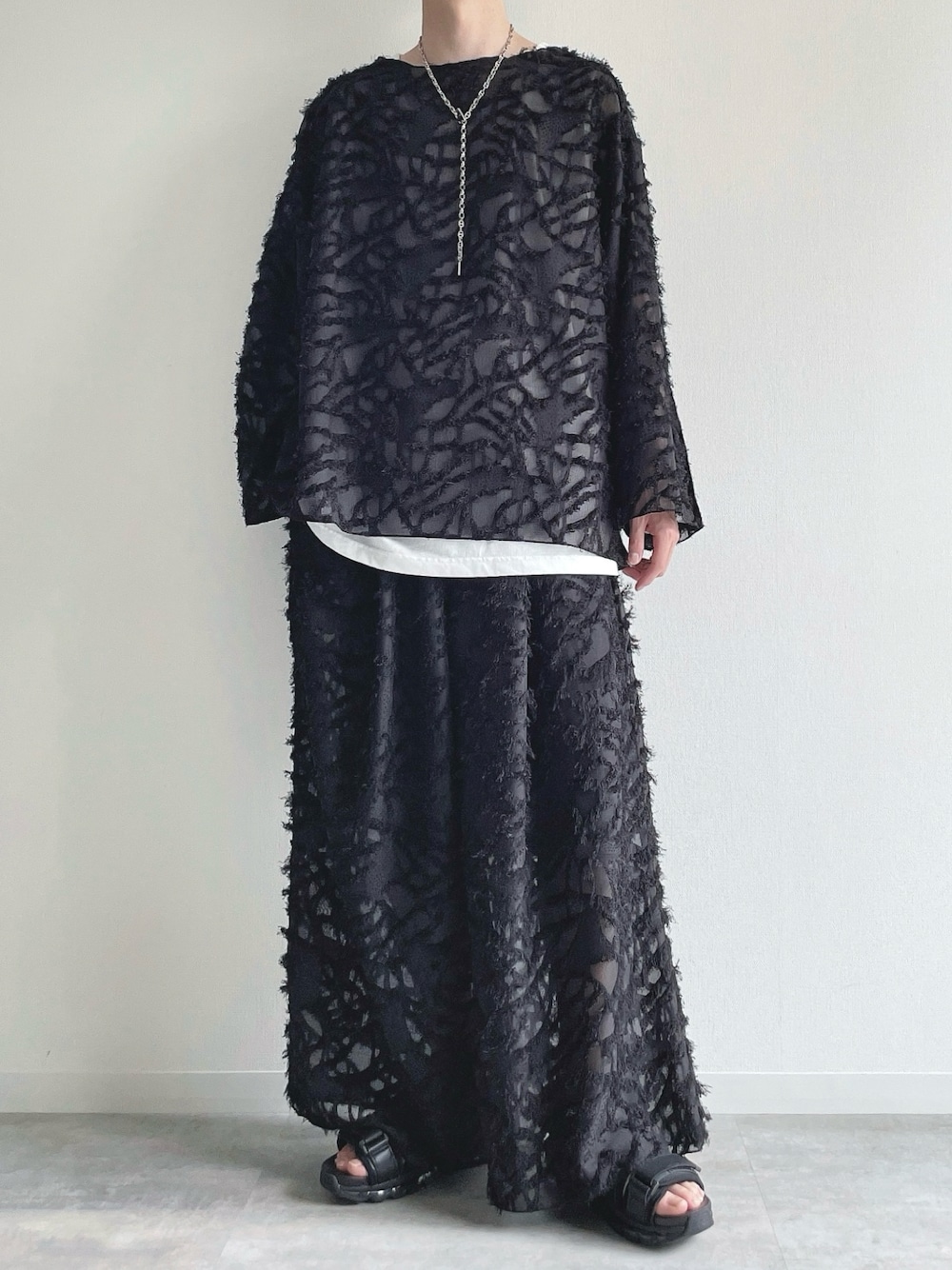 KEITAのTシャツ/カットソー「ボートネック シアープルオーバー フリンジ」を使ったコーディネート