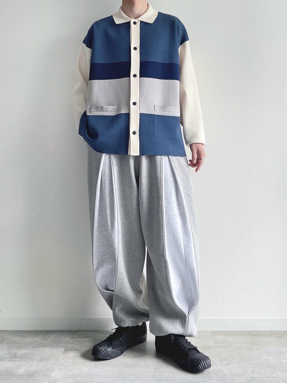 ご覧頂きありがとうございます。 今回はニットポロを使ったコーデ では👋🏻 〜〜 w e a r s i z e〜〜 ニットポロシャツ Mサイズ スウェットパンツ Mサイズ スニーカー 27.5cm -- 最後までお読み頂きありがとうございます。