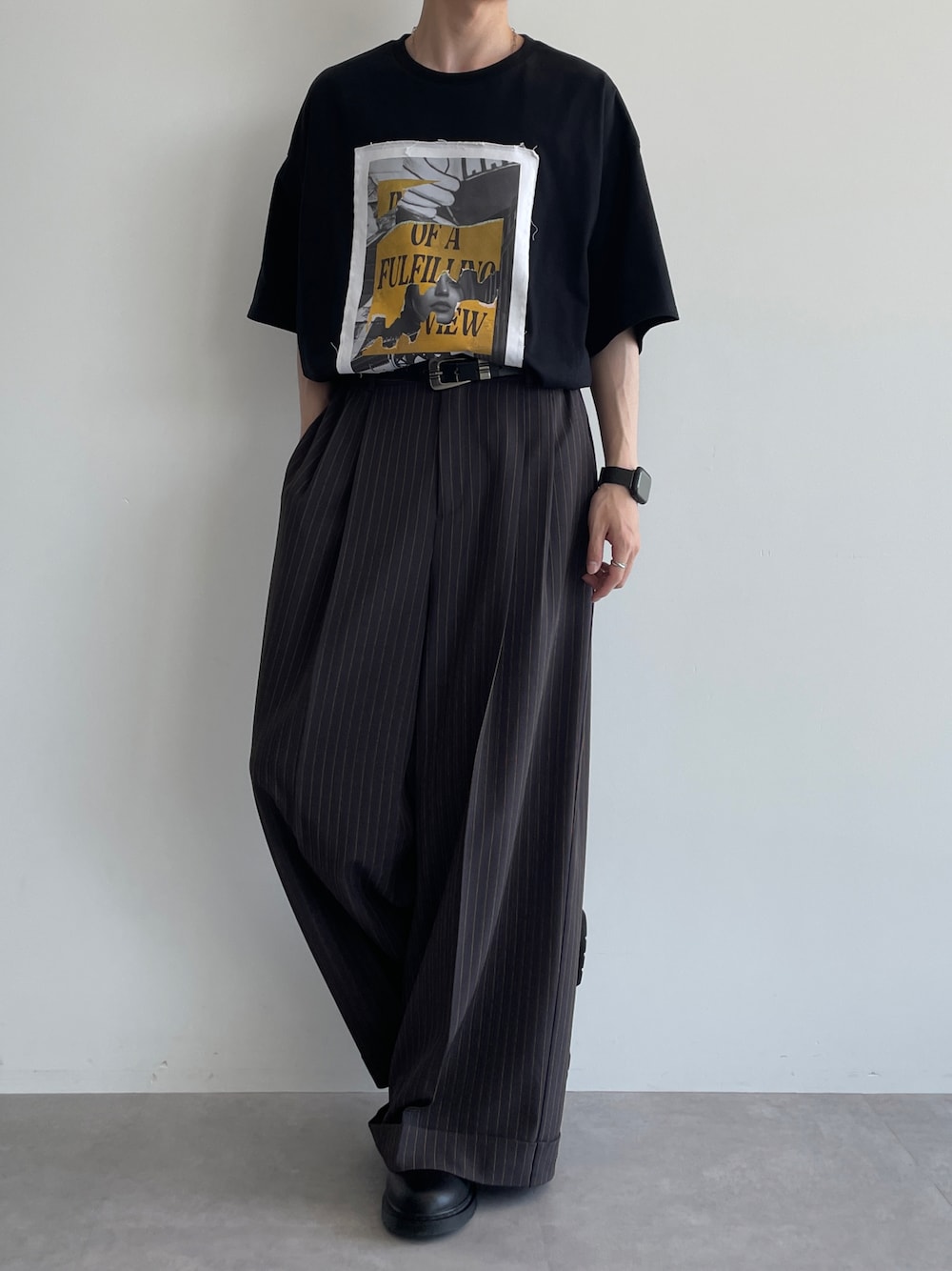 KEITAのスラックス「ピンストライプ2タックワイドバギースラックス」を使ったコーディネート
