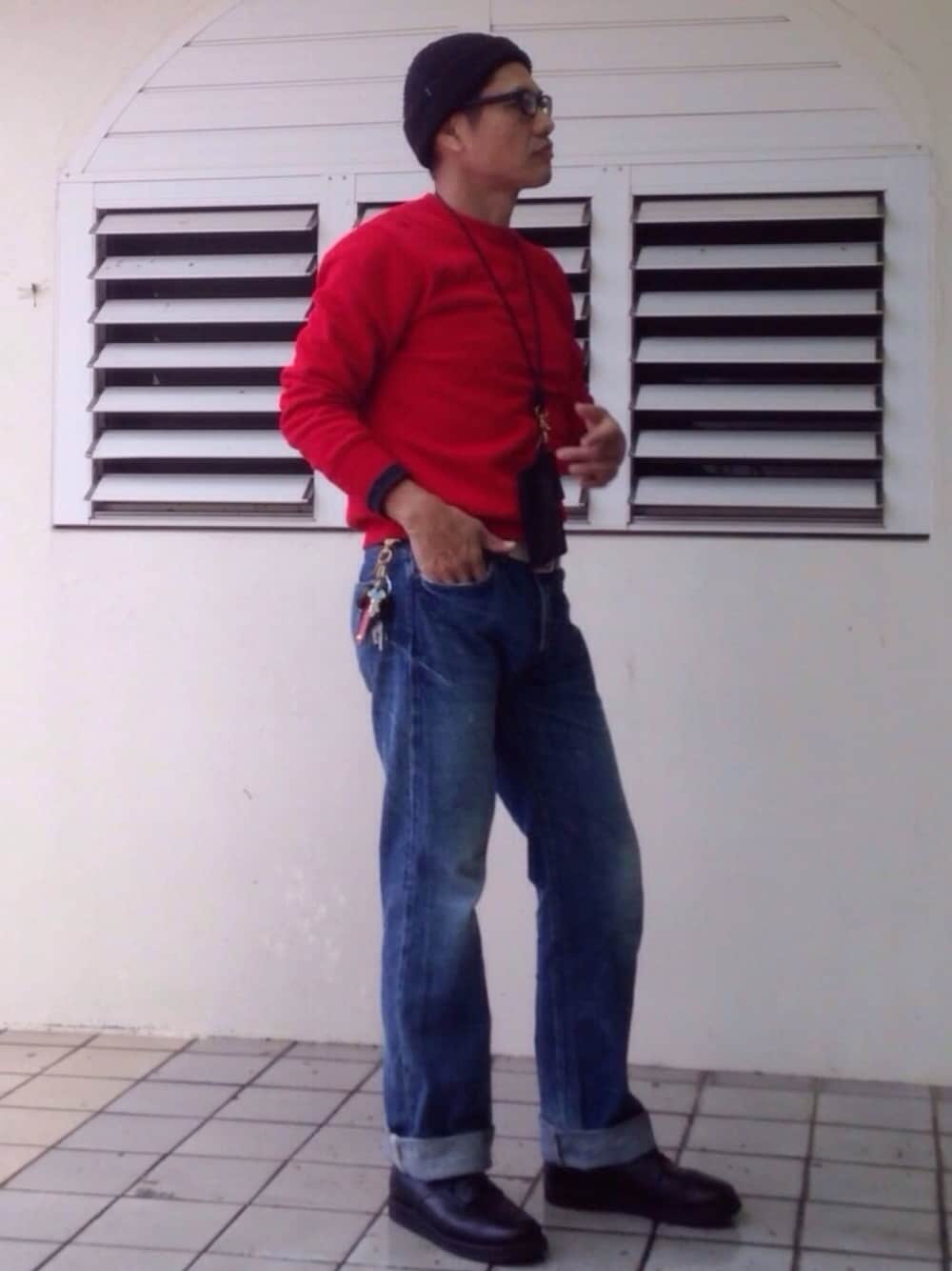 GUのスウェット、悪くない。 綿60ポリ40で軽い着心地。 いつもコットン100のヘビーウェイトなスウェットばっかり着てるから新鮮。 クリスマス前だったからか、迷わずサンタさん気分で赤を購入。 五十路目前の枯木には花🌸も必要ということで。 サイズはあえてワンサイズ下げてタイトに。 はい、変なオジサンのできあがり。
