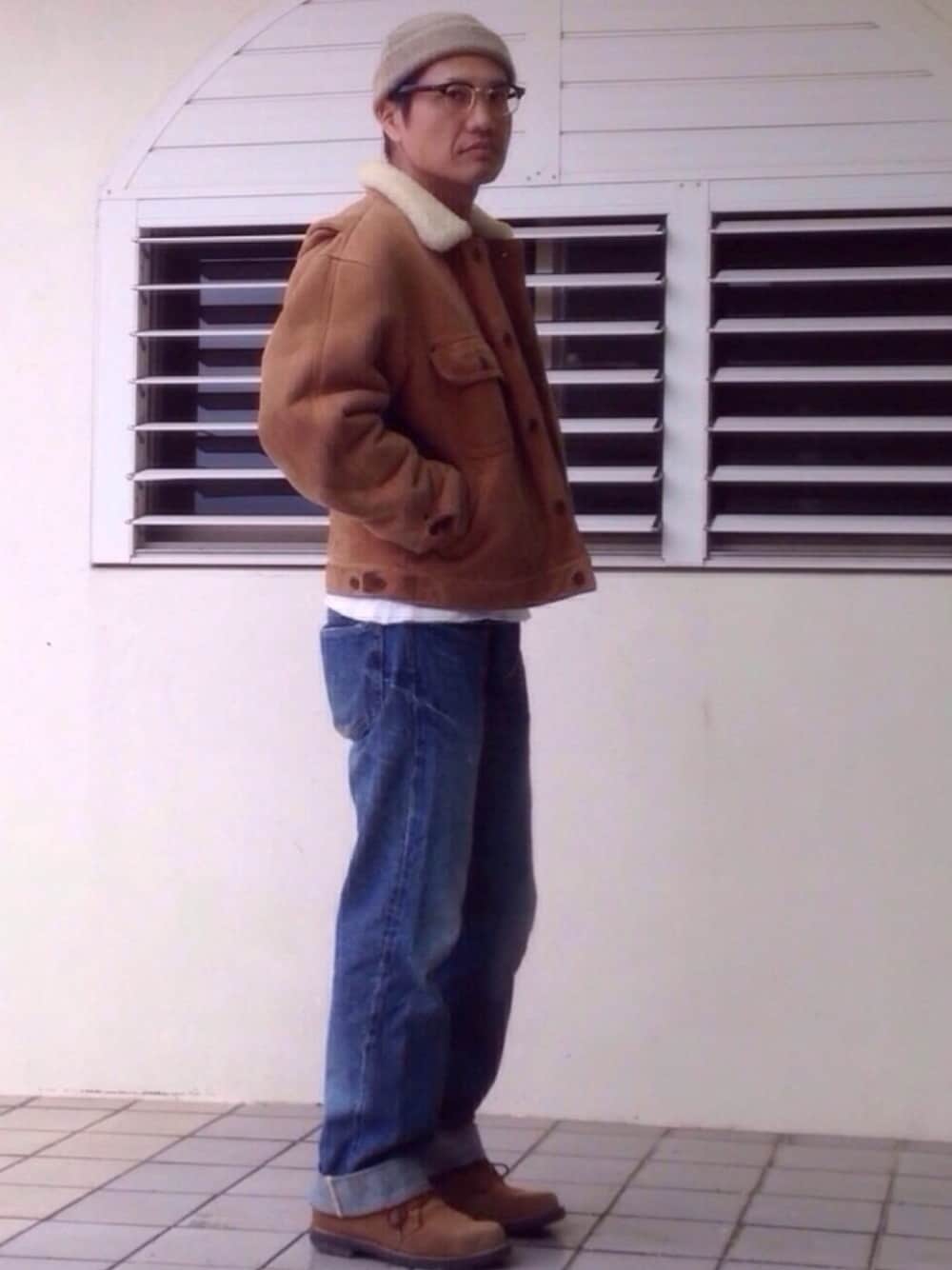 マイワードローブから最強アウターのお出まし。 スタジャンでおなじみの GOLDEN BEAR のムートンジャケット。 見た目よりずっと軽い。 防寒性は言うまでもなく、寒風の中をバイクに乗ってもまるで平気。 もちろんUSA製。現地価格でおそらく$300は下らないだろう。 それが古着で千円ちょっとだった。 ここんチのスタジャンやB-3フライトジャケットとは違って不人気商品だからか、多少シミがあったり、ボアが黄ばんでたりというだけでこの値段。 新品買うのがバカらしくなる。 中古に抵抗ない方は、GOLDEN BEAR社のムートン、狙い目かもしれませんよ。