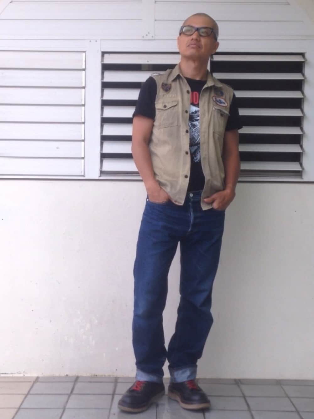 きのうのボーイスカウトシャツ、思い切って袖をカット。 アームホールがきつかったから、これでかなり動きがラク。 ついでにアタマもサッパリ。