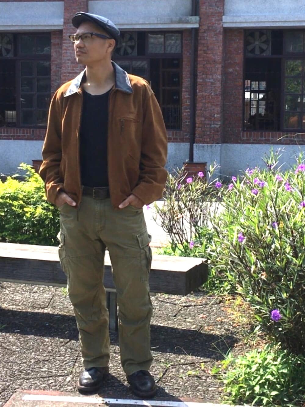 Schott のスエードトラッカージャケット。 朝晩少し冷えるようになってきた。 こういう季節、バイクに乗るとき一枚羽織っておくと安心。 ずっしりと重みのあるレザーが、風を通さない。 これ実はサイズ合ってなくて、2サイズほど上なもんで首元が空きすぎるのが欠点(油染みとポケット周りの破れのせいでジャンク扱いの激安商品。値段に惹かれて買ってしまった)。 でもだいじょうぶ。スカーフかネックゲイター巻いとけば気にならない。 あるいは、厚手のパーカーを下に着るとかね。 今日はカーゴパンツと合わせてミリタリーテイストで。
