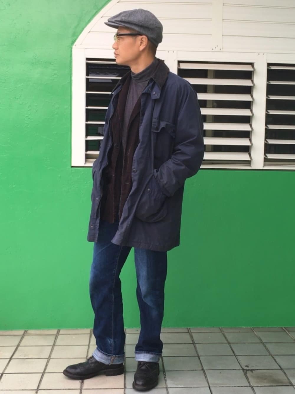 最近凝ってるネイビー&ブラック。 創業140年の老舗 BRITISH MILLERAIN 社のオイルドクロスを使用したジャケット。 同じく120年余の歴史を誇るシューメーカー Alfred Sargent のブーツ。 今日はイングランドの両雄をフィーチャー。 いい物は古くてもいい。