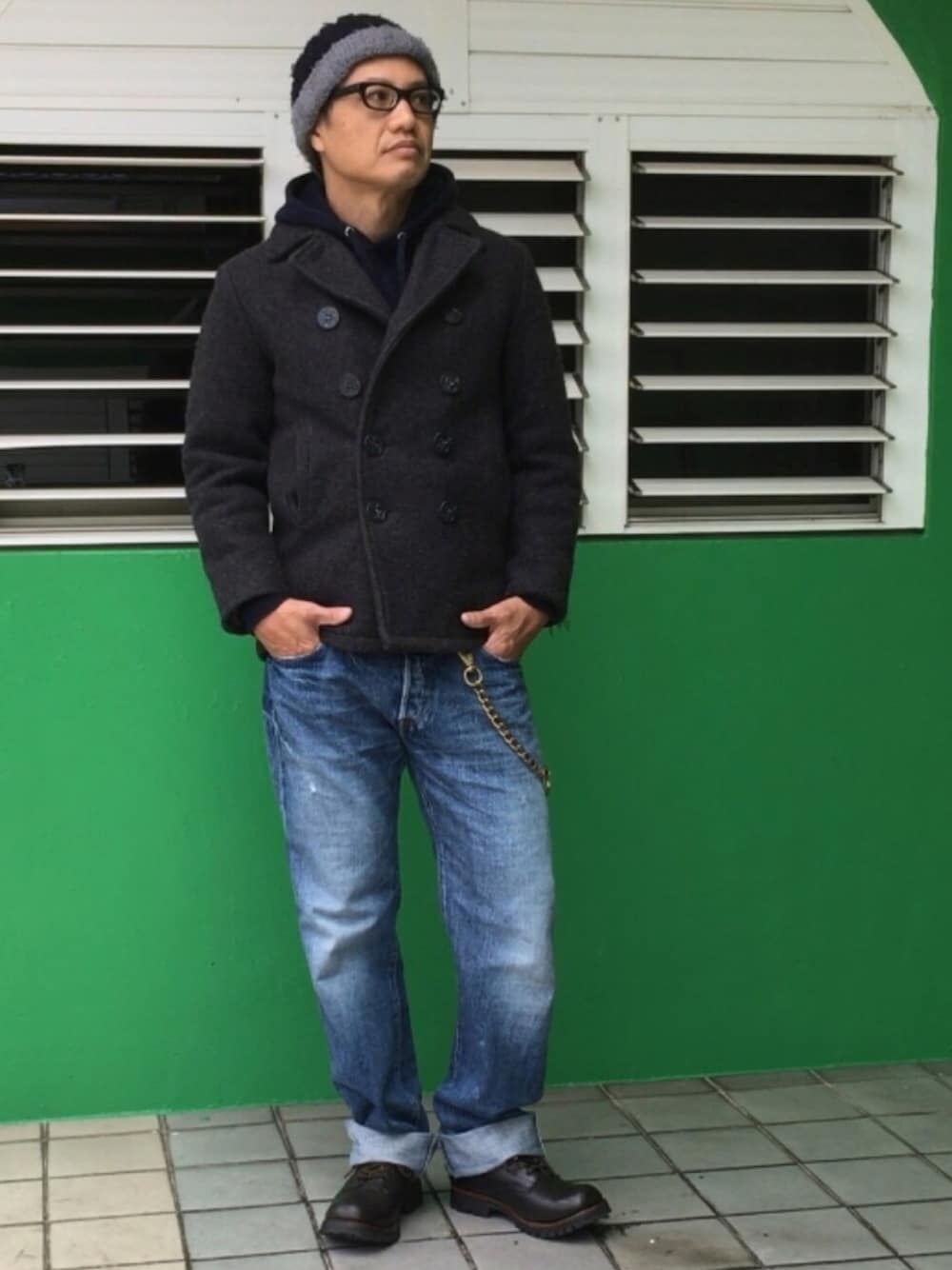 アウトドアブランド Columbia のビーニー。 もともとテッペンにかわいいボンボンがついてるボーイズもの。 当時4歳ぐらいだった息子にネット通販で買ったんだけど、ゼンゼン大きくて、結局私が使ってる。 さすがにボンボンは切ったけど。^_^ Schott のピーコートも、ボーイズの18サイズ。 本来はお尻が隠れる着丈なんだけど、ウエスト丈に。 まあ、これはこれでいいか。 アラフィフのおっさんがボーイズ着るのも変だけど、そこは開き直って。