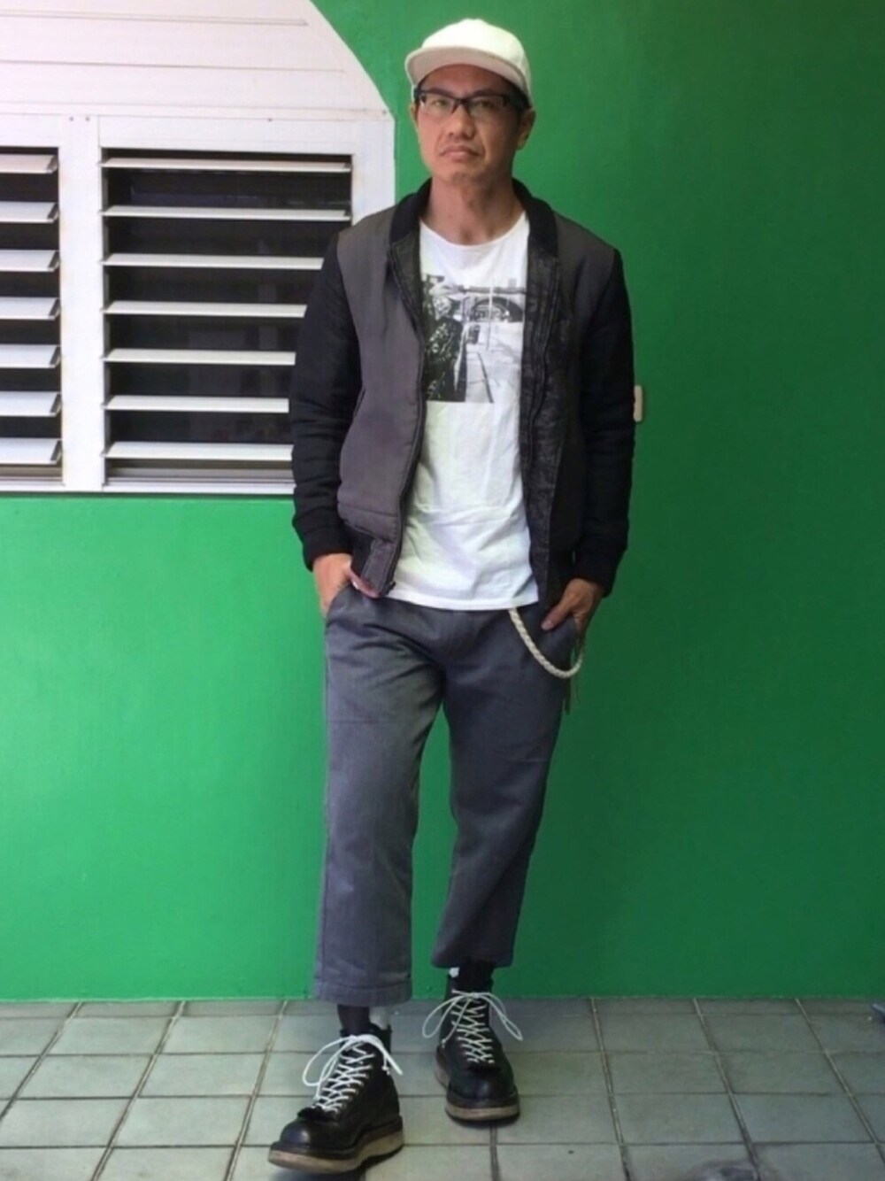 今日の2コーデめ。 Dickies つながりで。 こっちはクロップド丈のワークパンツ。 キャップとウォレット(見えてないけど)、ウォレットコードをホワイトレザーで揃えてみました。 ついでにブーツレースもホワイトレザーに付け替えました。 THREE BLIND MICE のリバーシブルMA-1。 定価約65,000円。(6,500円のマチガイじゃなく。) 私が買えますかっての。 古着で500円ちょっとの掘り出し物。 トンガッてるドメスブランドは、よほどのメジャーどころじゃないと中古価格は頭打ち。 狙い目かもね。 オリジナルのカモ柄とのリバーシブル。 シンサレート入りで驚くほど暖かい。 気に入りました。 すみません。野暮ったいオッサンが着てブランドイメージ損ないます。