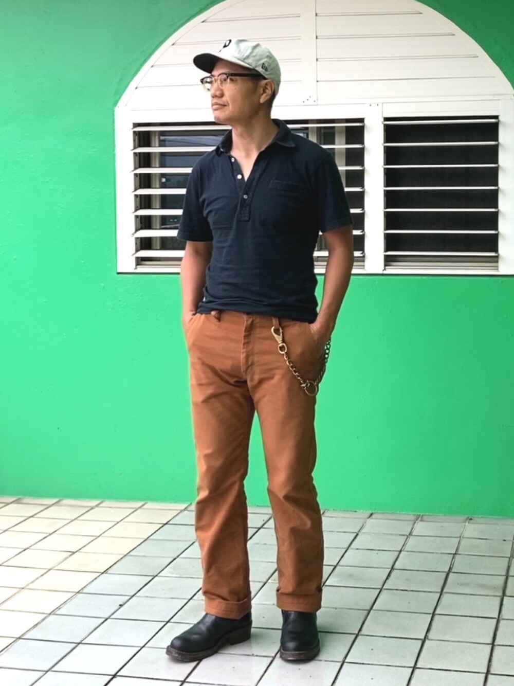 ポロシャツ、チノパン、リネンキャップ。 IG▷gotacarkey