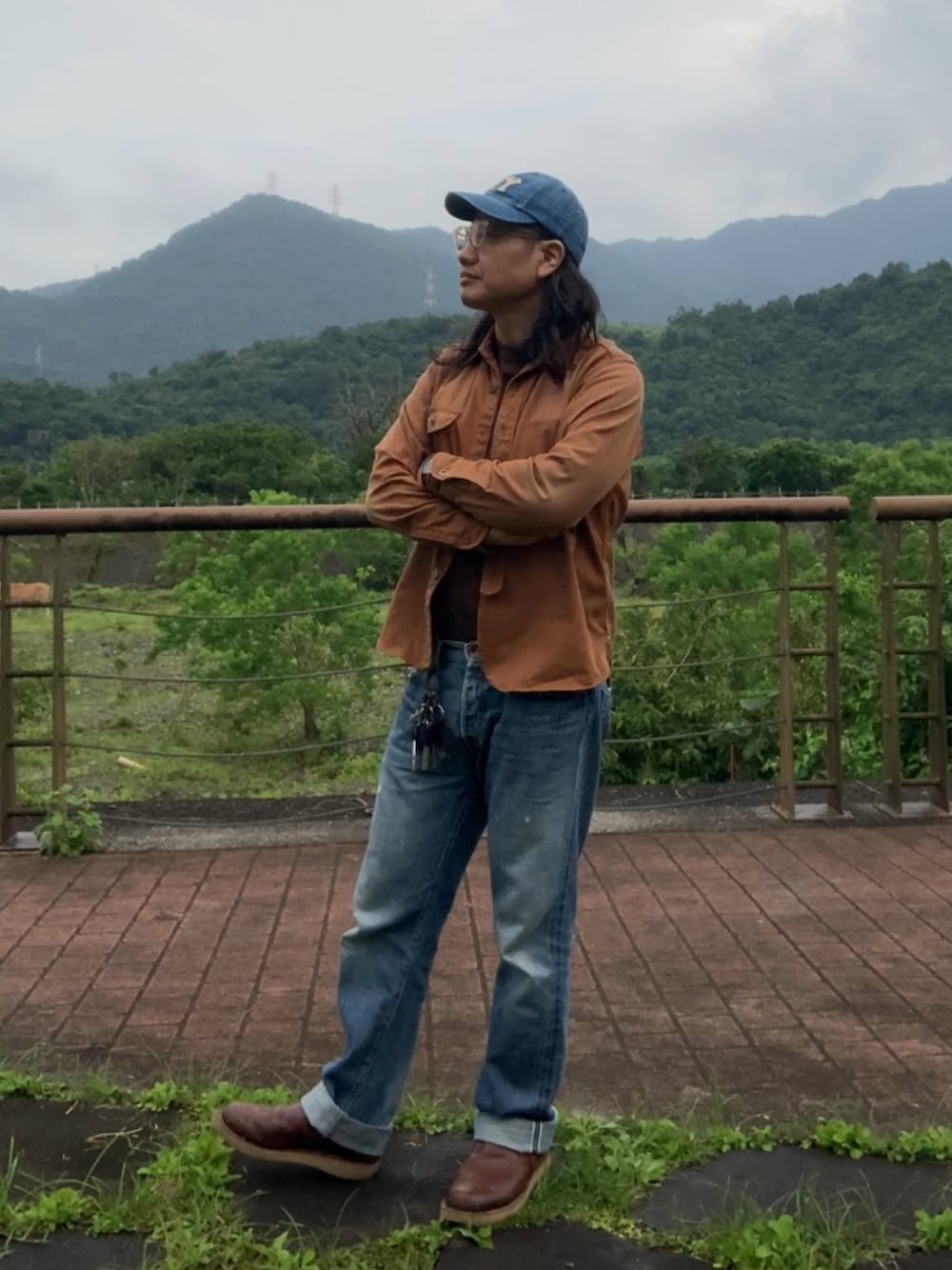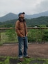 ヘビーウェイトのワークシャツにジーンズ。 インディゴブルーとブラウンの二色ですっきりめに。