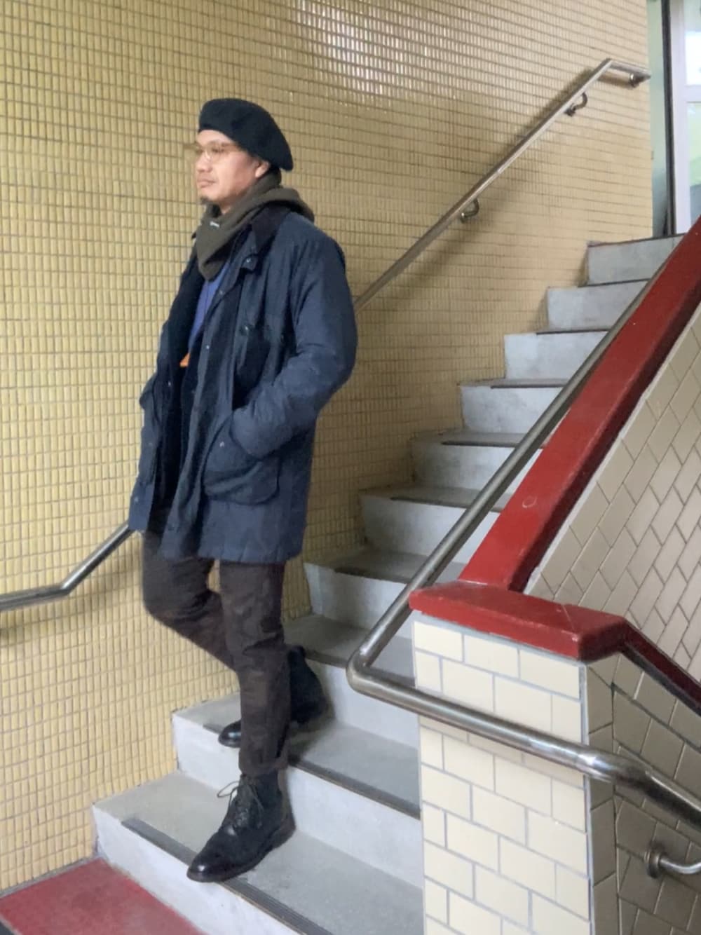 オイルドクロスのコート、メダリオンブーツで今日はブリティッシュ調。