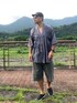 義父が着ないので私がもらいうけました。 和もたまにはいい。 アメアパのディープVネックと好相性。 フェーディドカラーのブラックデニムショーツとスリッポンを合わせて。