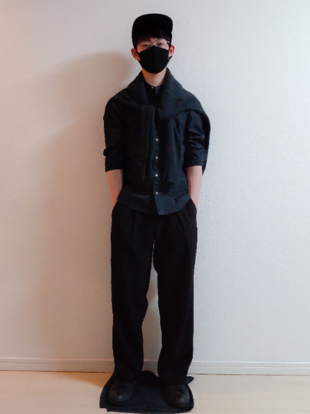 どうも、AAaa(ああああ)と申します。 今日も好きな洋服の話をしてます。 今日のピックアップタグのアイテムを持っていないため、好きに着たコーデです。 ひと目でわかるオールブラックコーデです。オールブラックコーデって色味的に重たく見えるので、春だと季節感的にあんまし向かないコーデだと思ってます。 思ってはいるんですが、どうしてもやりたくなったのでやっています。 上はほぼシャツ一枚なので、春コーデでいいでしょう!って思ってます。 オールブラックコーデって色味に華やかさがない上に、黒で素材感も潰れて見えるのでもしかしたら地味に見えやすいのかなって思ってます。 そのため、帽子にニットの肩がけなどして、のっぺり見える印象を消すようにしています。 シャツも光沢感がある物を選んでるので、そこもポイントです。多分。 帽子はハットにしてしまうと、流石にカッコつけすぎて見えちゃうかなと思ったので、キャップです。 パンツは靴に少し乗るように履いてクッションを作ってます。 黒って収縮色なので、ワイドパンツでもワイド感が上手く伝わらない気がしたのでこうしています。綺麗なAラインにできてるといいなって思ってます。 今日は少し短めです。 と言っても長いですが。 終わります。ありがとうございました。